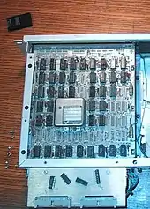 The Kenbak-1, ancestor of the first personal computers, used TTL for its CPU instead of a microprocessor chip, which was not available in 1971.[10] The Datapoint 2200 from 1970 used TTL components for its CPU and was the basis for the 8008 and later the x86 instruction set.[11] The 1973 Xerox Alto and 1981 Star workstations, which introduced the graphical user interface, used TTL circuits integrated at the level of arithmetic logic units (ALUs) and bitslices, respectively. Most computers used TTL-compatible "glue logic" between larger chips well into the 1990s. Until the advent of programmable logic, discrete bipolar logic was used to prototype and emulate microarchitectures under development.