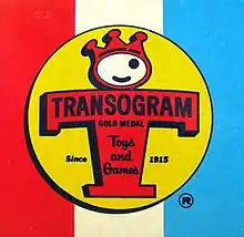Around the turn of the 20th century, Charles Raizen took a summer job with a manufacturer of embroidery patterns.[1] Years later, he found a method of transferring images using friction, and circa 1915, the company became the Friction Transfer Pattern Company,[2][3] first located on 2nd Street, between Avenues C and D, in Manhattan,[4] then at 113-115 University Place.[5][6] It quickly found that children enjoyed transferring the friction patterns, and the company shifted toward children's products such as Art-Toy Transfer Pictures. In 1917, Raizen bought the company and renamed it Transogram,[3] but using 1915 as the founding date in its company logo (see above). Moving to 200 Fifth Avenue,[7] the company developed the Toy Research Institute in order to test toys with input by a child psychologist, leading to the 1920s tagline that its toys were "Kid Tested".[3] The company also began licensing media properties, manufacturing the likes of a Little Orphan Annie set of clothes pins.