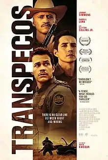 Transpecos is a 2016 American thriller film directed by Greg Kwedar, and written by Kwedar and Clint Bentley. The film stars Johnny Simmons, Gabriel Luna, and Clifton Collins, Jr. as border patrol agents who encounter a Mexican drug cartel. The film premiered at South by Southwest on March 13, 2016.[1] The film was released on September 9, 2016, in a limited release and through video on demand by Samuel Goldwyn Films.[2]