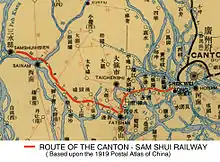 Canton–Sam Shui Railway, built from 1902 to 1904, was the first railway line in Guangdong.