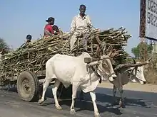 Bullock carts have historically been the most common mode of transport in Maharashtra for goods and, to a lesser extent, for people. They are still used in rural areas for transporting goods to homes and farms, or for transporting produce such as sugarcane to a mill.[3] Khillari cattle have been the most popular for use as oxen.[4]
