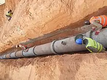 In 2004 Nigeria had 105 kilometers of pipelines for condensates, 1,896 kilometers for natural gas, 3,638 kilometers for oil, and 3,626 kilometers for refined products.[14] Various pipeline projects are planned to expand the domestic distribution of natural gas and to export natural gas to Benin, Ghana, Togo through the West African Gas Pipeline, and, potentially, even to Algeria (where Mediterranean export terminals are located) by proposed Trans-Saharan gas pipeline. Energy pipelines are subject to sabotage by militant groups or siphoning by thieves.[8]