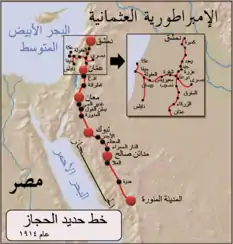 The first railway line in the kingdom predates the unification of Saudi Arabia. The 1,050 mm (3 ft 511⁄32 in) narrow-gauge Hejaz railway, that ran from Damascus to Medina, began construction in 1900 under the Ottoman Hejaz Vilayet, and was completed in 1908. A proposal to further extend the line to Mecca was made, but was never materialized. The southern portion of the line was mostly destroyed during the First world War. A few sections of the track remain, with some sections in Jordan being used up to today. The stations in Mada'in Salih and Medina have been converted into museums (Hejaz Railway Museum and Mada'in Salih Railway Station), each having some locomotives and rolling stock from the original railway.[4][5]