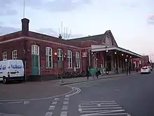 East Worthing opened in September 1905 as Ham Bridge Halt and was renamed in 1949. It retained a ticket office until the 1990s, but is now unstaffed.[23][24][25] The town's main station, Worthing (formerly Worthing Central), is 0.9 miles (1.4 km) west.[21] It was opened on 24 November 1845, but the present structure dates from 1909.[26] The old station building, further east, was preserved and is now listed at Grade II.[27] West Worthing station, a further 0.8 miles (1.3 km) on,[21] opened in 1889 to serve new residential development north of Heene. The main building is Italianate.[28] Before Durrington-on-Sea, another 0.8 miles (1.3 km) west, are train carriage stabling facilities, sheds and sidings.[29] Durrington-on-Sea, which was almost renamed Field Place in 1947 in reference to an 18th-century house nearby, opened in 1937.[24] Goring-by-Sea is 0.9 miles (1.4 km) further west and dates from 1846.[21][28] All stations have frequent daily services provided by Southern, to destinations such as London, Croydon, Gatwick Airport, Brighton, Chichester, Portsmouth and Southampton.[30] Worthing station also receives occasional long-distance trains operated by Great Western Railway.[31]