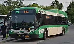 ![]() Gillig BRT RC241 on Route 59 leaves Spring Valley Transit Center, bound for Nyack. | |