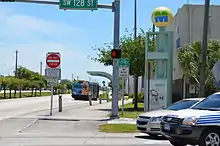 The Greater Miami area,[lower-alpha 1] composed of the three counties of Miami-Dade, Broward, and Palm Beach, also known collectively as South Florida, is home to a wide variety of public and private transportation systems. These include heavy rail mass transit (Metrorail), commuter rail (Tri-Rail), automated guideway transit (Metromover), highways, two major airports (Miami International Airport (MIA) and Fort Lauderdale – Hollywood International Airport (FLL)) and seaports (Port of Miami and Port Everglades), as well as three county-wide bus networks (Miami-Dade Metrobus, Broward County Transit (BCT), and Palm Tran), which cover the entire urbanized area of South Florida. Census and ridership data show that Miami has the highest public transportation usage of any city in Florida, as about 17% of Miamians use public transportation on a regular basis, compared to about 4% of commuters in the South Florida metropolitan area.[4] The majority of public transportation in Miami is operated by Miami-Dade Transit (MDT), which is currently the largest transit system in Florida and was the 14th largest transit system in the United States in 2011.[5]