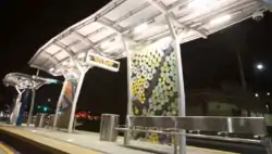 | Downtown San Bernardino's Civic Center Station on the rapid transit sbX's Green Line. This station is the northernmost downtown station located on Court Street, near Court Street Square and the Entertainment District's Theatre Square. | Downtown San Bernardino's Hunts Lane Station on the rapid transit sbX's Green Line. The station is the southernmost downtown station located on Hunts Lane, near the San Bernardino Hall of Records. |