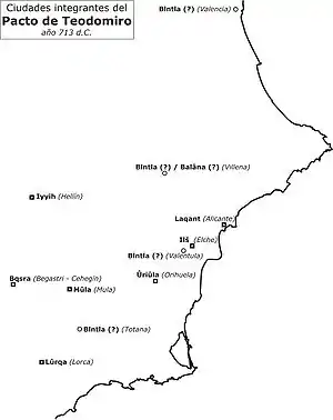 Christian Visigoth prince of Murcia. The Treaty of Tudmir was made between Theodemir and ‘Abd al-‘Aziz.[15]