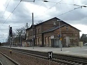 Trebbin station is a railway station in the municipality of Trebbin, located in the Teltow-Fläming district in Brandenburg, Germany.