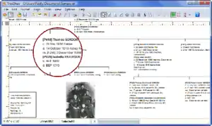 TreeDraw is essentially a vector graphics editor which creates various styles of family tree charts[4] using data imported from external sources such as GEDCOM files or Kith and Kin Pro databases.[5] The program allows user manipulation of the imported charts using features common to most drawing programs such as element repositioning and scaling.[5]