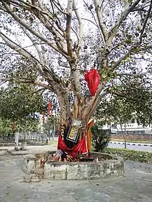 Early Buddhism held that trees had neither mind nor feeling and might lawfully be cut; but it recognized that certain spirits might reside in them, such as Nang Takian in Thailand. Propitiation is made before the axe is laid to the holy trees; loss of life or of wealth and the failure of rain are feared should they be wantonly cut; there are even trees which it is dangerous to climb. The Talein of Burma prays to the tree before he cuts it down, and the African woodman will place a fresh sprig upon the tree.[1] In Hawaiian tradition, a tree either located at the end of a valley or on a cliff near the sea, is used by the soul as a gateway to the Underworld (AKA Pit of Milu).[9] Some Ancient Indian tree deities, such as Puliyidaivalaiyamman, the Tamil deity of the tamarind tree, or Kadambariyamman, associated with the kadamba tree were seen as manifestations of a goddess who offers her blessings by giving fruits in abundance.[10]