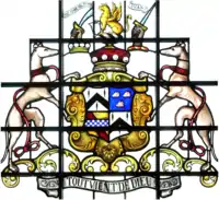 The arms of the Trefusis family are: Argent, a chevron between three spindles sable; the crest is: A griffin segreant or resting his dexter foot on a shield argent.[7]