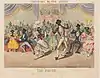 Of the twelve cartoons in Tregear's initial series, Summers designed and drew nine, two were reissues of Clay cartoons redrawn by Summers (from Isaacs), and Charles Hunt engraved all eleven as lithographs.[2] The last cartoon was credited as "Drawn & Engraved by I. Harris." "I. Harris" is now accepted as a pseudonym for Edward Williams Clay himself.[3] Another eight of the Clay cartoons redrawn by Summers (from Isaacs) were soon reissued to expand the first Tregear series to twenty plates.[4]