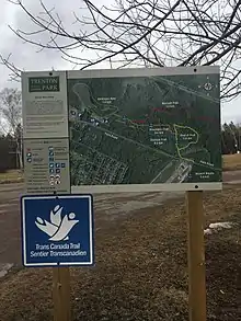 A beautiful park located on the north-east edge of Trenton is a popular site attraction for the locals of the Trenton community, as well as the visitors who are passing by. The Centennial Park offers a variety of walking trails within the 560 acre environment therefore, making the park the largest public green space in Pictou County,[6] it is a great way to interact with the locals and engage in a healthy lifestyle. Trenton Park offers other attractions including an outdoor swimming pool, amphitheater, and summer time canteen for refreshments. Out of the many walking locations that are offered a highly popular trial located in the middle of the park overlooks beautiful diverse ponds which is now part of the Trans Canada trail. It is extremely important for the Town of Trenton to focus on the continued development and maintenance of this valuable asset which will aid in the growth of the entire community.[6] A picnic area located in Trenton park provides visitors a space to stop and enjoy food while enjoying the landscape.[7]