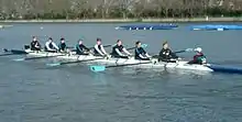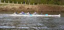 Trevelyan College Boat Club (TCBC) is the boat club of Trevelyan College, at Durham University in England. An active north eastern rowing club, it competes on a national level, for example at Henley Royal Regatta[3] and the Head of the River Race. The club runs under the leadership of a structured executive committee and benefits from an annual intake of around thirty novice rowers each year. The club was founded officially in 1976, although there was a history of rowing at the college earlier, with the first boat bought in 1966. It is recorded that an all fresher crew won the Ladies Invitation Race at the university Epiphany Term regatta in 1967.[4]