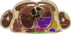 ![]() Cross section #1428 of the Visible Human Male showing the structures of the triangle of auscultation | |