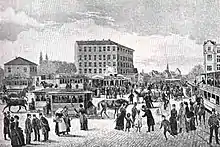 In the 19th century, Trianglen was a hub for carriages which drove copenhageners north to Jægersborg Dyrehave.[3] Strandvejen Steam Tramway Company opened a route between Trianglen and Klampenborg in 1884 but it was discontinued in 1892.[4]