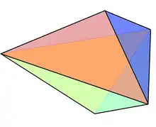 In geometry, the triangular bipyramid (or dipyramid) is a type of hexahedron, being the first in the infinite set of face-transitive bipyramids. It is the dual of the triangular prism with 6 isosceles triangle faces.