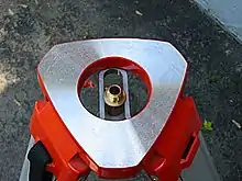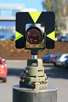 A tribrach is an attachment plate used to attach a surveying instrument, for example a theodolite, total station, GNSS antenna or target to a tripod. A tribrach allows the survey instrument to be repeatedly placed in the same position over a surveying marker point with sub-millimetre precision, by loosening and re-tightening a lock to adjust the instrument base in a horizontal plane.