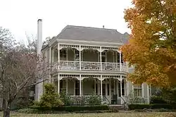 The Trimble House is a historic house at 518 Center Street in Lonoke, Arkansas. It is a large 2+1⁄2-story wood-frame structure, with a tall gabled roof. A large gabled section relieves the left side of the gable, and a gable section projects from the front, from which the entry porch, also gabled, projects. Built in 1916, it is a fine example of Craftsman architecture, designed by Charles L. Thompson.[2]