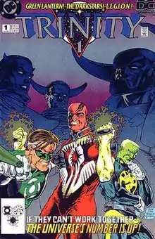 "Trinity" is a comic book crossover storyline published by DC Comics that ran through a self-titled limited series and the issues of Darkstars, Green Lantern vol. 3 and L.E.G.I.O.N. '93 cover dated August and September 1993. It was written by Gerard Jones and Mark Waid from a plot by Michael Jan Friedman.