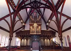 Several changes occurred in the second half of the twentieth century. The 1960s saw changes for the Trinity congregation with the establishment of two new churches in the Iowa Quad Cities. St. Alban's Church was organized in 1960 in northwest Davenport, and in 1966 St. Peter's Church was established in Bettendorf.[4] In 1979 the Wolff & Associés pipe organ, opus 22, was installed in the gallery of the cathedral.[21] In 1988 Trinity's Dean, the Very Rev. Edward Harding MacBurney, was elected the seventh Bishop of Quincy.[22]
