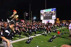 Euless is home to one of the largest Tongan populations outside of Tonga; the school is known for welcoming and celebrating students from diverse backgrounds.[9][10][11][12] One of the school's most visible cultural celebrations is the varsity football team's performance of the Sipi Tau before and after each game.[13]