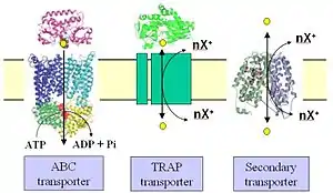 TRAP transporters were discovered in the laboratory of Prof. David J. Kelly at the University of Sheffield, UK. His group were working on the mechanism used by the photosynthetic bacterium Rhodobacter capsulatus to take up certain dicarboxylic acids. They characterised a binding protein component (DctP) of a transporter that recognized these compounds, which they assumed would form part of a typical ABC transporter, but when they sequenced the genes surrounding dctP they found two other genes encoding integral membrane proteins, dctQ and dctM, but no genes encoding components of an ABC transporter.[1] They further showed that uptake of the same dicarboxylates was independent of ATP and that uptake required an electrochemical ion gradient, making this a unique binding protein-dependent secondary transporter.[1]