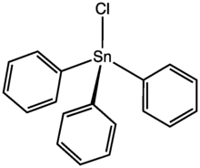 Triphenyltin chloride is an organotin compound with formula Sn(C6H5)3Cl. It is a colourless solid that dissolves in organic solvents. It slowly reacts with water. The main use for this compound is as a fungicide and antifoulant.[1] Triphenyl tin chloride is used as a chemosterilant. Triphenyl tins used as a antifeedants against potato cutworm.