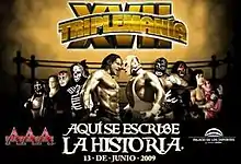 Triplemanía XVII was a professional wrestling pay-per-view (PPV) event produced by the AAA promotion, which took place on June 13, 2009 at the Palacio de los Deportes in Mexico City, Mexico.[1] It was the year an event was held under the Triplemanía chronology. Triplemanía XVII was the third Triplemanía event to take place in Mexico City, and the second to take place in Palacio de los Deportes, site of the previous Triplemanía XVI as well. The show drew close to 16.000 spectators, down from the previous years 19.000 spectators in the same venue. The Triplemanía set reduced the capacity of the arena compared to the previous year but it was not a complete sell out.[2]