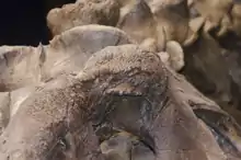 As earlier with Sue, a legal dispute has arisen about the initial ownership of the specimen. Under the law of Montana, land property can be made a split estate, i.e. split between a surface estate and a mineral estate. While Murray had the surface rights, two thirds of the mineral rights were held by the Billings Garfield Land Company; the remainder was divided by Murray and former landowners Jerry and Robert Severson. On 21 August 2014, the Seversons claimed in court that the skeleton was a mineral because fossils are mineralised. However, on 20 May 2016, the U.S. District Court for the District of Montana ruled against them, considering that in normal parlance a dinosaur is not a mineral.[35] Subsequently, the Seversons appealed to the Ninth Circuit U.S. Court of Appeals.[36] Until the matter was settled, the money Naturalis paid, was held in escrow. On 6 November 2018, the Court of Appeals ruled in favour of the Seversons. In June 2020, the Ninth Circuit U.S. Court of Appeals reversed course, ruling that the fossils belonged to the Murray.[37] This came after the Montana Supreme Court determined that fossils are not minerals under Montana state law and thus belong to the surface estate.