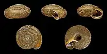 | Five views of a shell of Trochulus hispidus | |