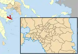 The municipality was formed at the 2011 local government reform by the merger of the two former municipalities Methana and Troizina, that became municipal units.[2] Initially named Troizinia, in January 2014 the municipality was renamed Troizinia-Methana.[3] The municipality has an area of 240.858 km2.[4]
