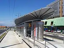 All service was also free from its opening in 2007 until December 2014,[8] as the operator had long stated that fares would not be charged until the service was extended to the city centre.[9] The latter did not occur until August 2015, after being repeatedly delayed, so the introduction of fares took place before the line reached the city centre.[5] As with the Quito trolleybus system and other BRT systems, fare collection took place within the stations, before boarding, so that loading could take place via all three vehicle doorways simultaneously.