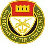 The 713th Cavalry continued to exist as a parent regiment after the United States Army Regimental System (USARS) was implemented for the Army National Guard on 1 June 1989. On 1 October 1991, it reflagged as the 202nd Cavalry, consisting of Troop B at Beaufort.[1] The regiment was not authorized a coat of arms or a distinctive unit insignia.[2] Troop B eventually became known as the Guardians of the Lowcountry after the region that the unit was stationed in. On 1 September 2008 Troop B, 202nd Cavalry was converted into the 131st Military Police Company of the 51st Military Police Battalion as a result of the elimination of the 218th Infantry Brigade.[8]