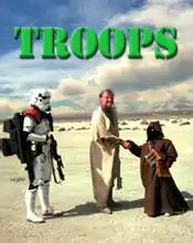 Troops is a 1997 short mockumentary film directed by Kevin Rubio that debuted at San Diego Comic-Con International on July 18, 1997 and was subsequently distributed via the internet. The film is a parody of COPS, set in the Star Wars universe. In the film, Imperial stormtroopers from the infamous Black Sheep Squadron patrolling the Dune Sea on the planet Tatooine run into some very familiar characters while being filmed for the hit Imperial TV show Troops. In a Reddit AMA in January 2018, Rubio stated that Troops is acknowledged by George Lucas as a canonical installment in the Star Wars franchise.[1]