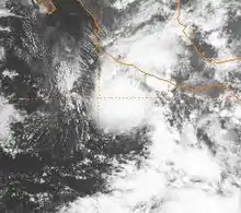 Maintaining its peak intensity for 30 hours, Agatha gradually decelerated as it passed within 100 mi (160 km) southwest of the Mexican coast.[1] Although specialists at the NHC had anticipated a Category 1-hurricane landfall on the territory,[7] the storm defied predictions and stayed at sea.[6] The center of the storm promptly became ill-defined on infrared satellite imagery, simultaneously recurving to the west.[8] Agatha continued to degenerate quickly into the morning of June 4, with a ragged appearance observed on satellite imagery.[9] By 0600 UTC June 5, the storm was downgraded back into tropical depression status prior to dissipating the next day.[1]