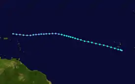 While crossing through the Cape Verde islands, Beryl's rain and wind to caused moderate to heavy damage. The island of Brava, located on the southwest portion of the archipelago, was struck the hardest. In all, the storm killed 3 islanders and caused $3 million in damage (1982 USD).[4][5] In the period after the storm's passage, the United States provided humanitarian aid and economic assistance to the country, helping the archipelago to reverse the effects of Beryl.[6] Despite the death toll, the name Beryl was not retired and was re-used in 1988, 1994, 2000, 2006, 2012 and most recently in 2018 and is currently on the list of names for the 2024 Atlantic hurricane season.[7]