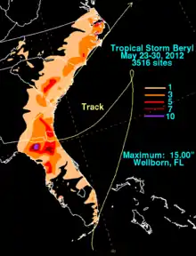 - David M. Roth (June 12, 2012). Tropical Storm Beryl – May 23–30, 2012 (Report). Hydrometeorological Prediction Center. Retrieved June 20, 2012.
