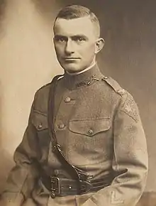 The 4th Division, on its own for the first time in the war, was assigned a front that was one to two miles wide, sandwiched between two seasoned French divisions, about eight miles from Verdun. Lieutenant Colonel Middleton's battalion led the attack for the Americans on 26 September 1918. That day, they covered five miles, breaking through German defenses, after which it was up to the entire 47th Infantry Regiment to hold onto the gains.[38] Middleton then put his second-in-command in charge of the battalion when he was assigned as the executive officer of the regiment. He was in this staff position for two weeks when, on 11 October, he was given command of the 39th Infantry Regiment after commander James K. Parsons and most of his regimental staff became casualties following a gas attack.[39] At about one o'clock in the morning, Middleton had to find his way to the 39th headquarters and prepare for battle at daybreak. Shortly before 7:30 a.m., Middleton led his new regiment into enemy-held territory using a tactic called "marching fire," where all of the troops constantly fired their weapons while moving a mile through heavy woods. This compelled most of the dug-in and concealed Germans to surrender, and allowed the 4th Division to move to the edge of the Meuse River.[40] Three days after taking command of the 39th, and two days after his twenty-ninth birthday, Middleton was promoted to colonel, becoming the youngest officer in the American Expeditionary Forces to attain that rank.[40] He also received the Distinguished Service Medal for his exceptional battlefield performance.[41]