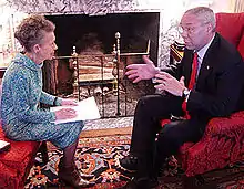 ![]() President Ronald Reagan interviewed by correspondent Feldman | |