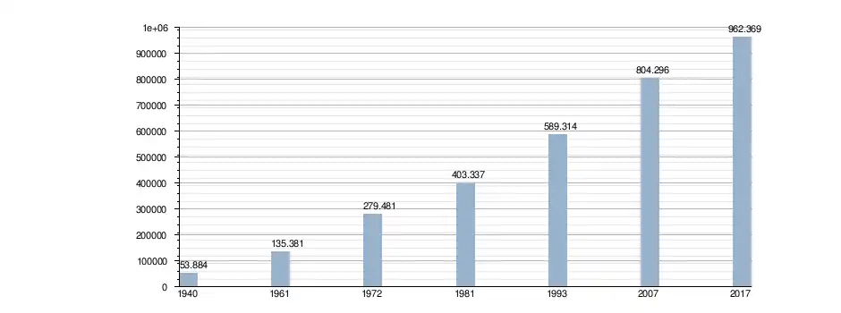 | 1940 | 1961 | 1972 | 1981 | 1993 | 2007 | Estimated 2015[6] | |