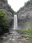 Trumansburg is located at 42°32′26″N 76°39′36″W (42.540447, -76.660121).[6] According to the United States Census Bureau, the village has a total area of 1.2 square miles (3.1 km2), of which, 1.2 square miles (3.1 km2) of it is land and 0.83% is water. The village is located on the Trumansburg Creek (also known as Frontenac Creek) which arises on the ridge west of the village and empties into Cayuga Lake at Frontenac Point. Trumansburg is in the northern part of Tompkins County with its northern boundary bordering Seneca County. It is approximately 12 miles north of Ithaca, New York on the west side of Cayuga Lake. The scenic Taughannock Falls State Park, featuring one of the highest waterfalls east of the Rocky Mountains, is located just southeast of the village at the edge of Cayuga Lake.