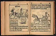 The Rigveda in Hindu mythology also reflects the myth of the Sun chariot. RV 10.85 mentions the sun god's bride as seated on a chariot pulled by two steeds. The relevant verses are the following (trans. Griffith):