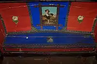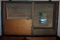 There were numerous tray and lid compartments in Victorian trunks, ranging from basic to complex. A basic tray system comprised a hat box, a shirt compartment, a coin box, and a document box. A complex tray system, however, could consist two hat boxes, several other shirt compartments, a coin box, several document boxes and even secret compartments strategically placed so that people of unwanted access would pass up if not wary. Beautiful lithographs would be placed over the lids or dome of the trunk and truly capture the Victorian aesthetic of that day. There were numerous chromolithographs that a trunk maker could use, and they could be indicative of who the trunk was intended for, such as ladies or men. A bride's chest usually had a lot of floral pictures or lithographs of other ladies, while men's had pictures of "village" or country scenes. It was up to the malletier what to put on the lids and trays.