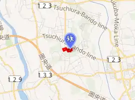 The school is located in the Kamigo region of Tsukuba Science City and the closest stations are Banpaku Kinen Koen on the Tsukuba Express Line and Mitsuma on the Joso Line.