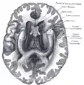 Mesal aspect of a brain sectioned in the median sagittal plane.