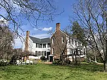 William Randolph III constructed the current dwelling, now a National Historic Landmark, beginning in the mid-1730s.[10][11] Dendrochronology analysis indicates the timbers in the older (north) wing date to ca. 1733 and this is supported by archaeological evidence dating the north porch to ca. 1740. The north wing features pine and black walnut paneling with exquisite carvings and moldings. William Randolph then added a center hall and south wing, creating a unique "H" shape which was completed by 1740.[11] The main residence at Tuckahoe plantation is one of the "great plantations" of 18th-century Virginia.[10]