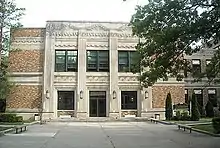 Tuckahoe High School is a historic high school located in Eastchester, Westchester County, New York. It was built in 1930–1931, and is a three-story brick building with Aztec-inspired cast stone trim in the Art Deco style. The front facade is composed of a three-story, nine bay central pavilion, deeply recessed two-story, five bay connecting wings, and projecting, identical, two-story, five bay end pavilions.[3]