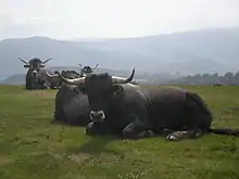 The Tudanca is a traditional Spanish breed of cattle from Cantabria, in northern Spain.[1][2][3][4][5] It takes its name from the village of Tudanca in the Comarca de Saja-Nansa in western Cantabria.[6] In the past it was a draught breed, much used for transport of goods to and from the ports of the Cantabrian coast;[7]: 161 it is now reared for meat,[8]: 268 but is still used in traditional sport of arrastre de piedra, or "stone-dragging".[7]: 160 Despite its geographic proximity, it is not closely related to the other cattle breed of Cantabria, the Pasiega.[8]: 268